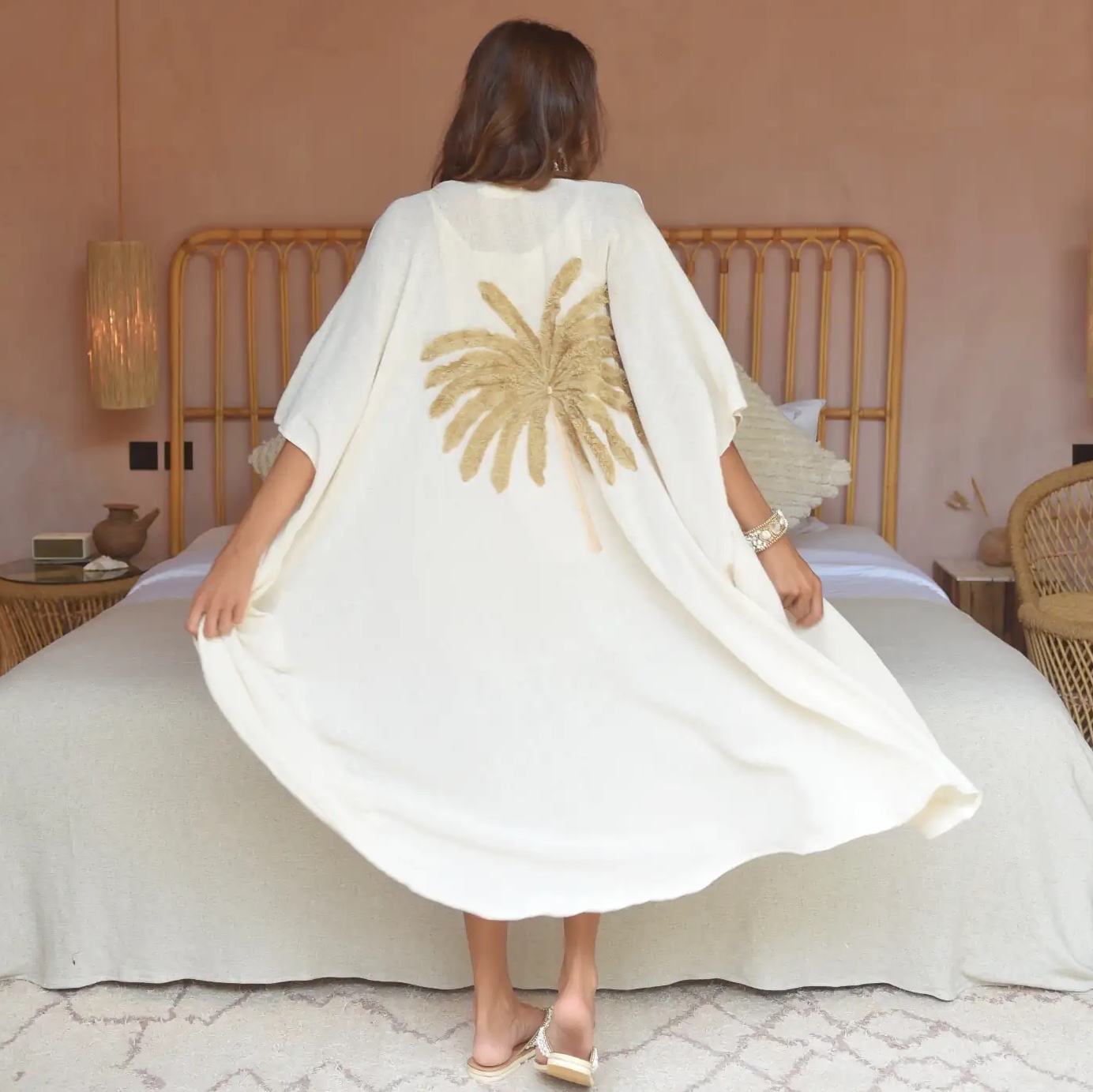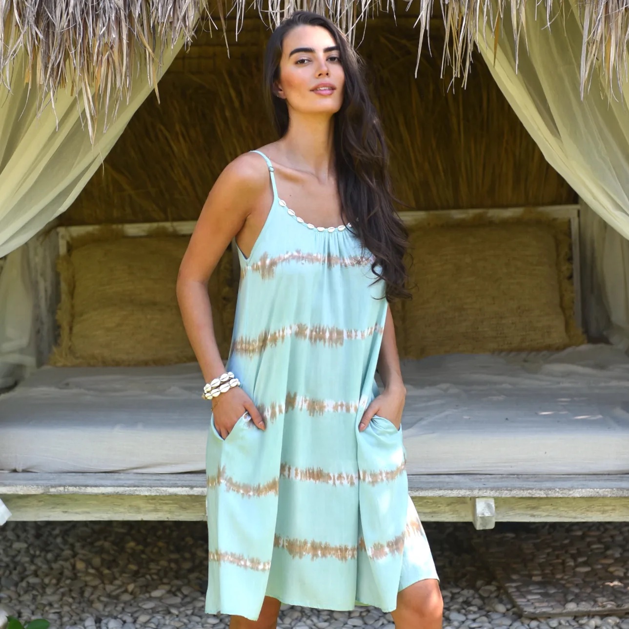 Kaftan Bellagio is een uitvoering van een van Hot Lava’s nieuwste ontwerpen, een adembenemend stuk dat niet mag ontbreken in je zomergarderobe. De kaftan is handgemaakt in Bali en is voorzien van een V-hals. De stof is een luxueuze rayon voile, die licht en luchtig aanvoelt, perfect voor warm weer. Zijsplitten voegen een vleugje elegantie en bewegingsvrijheid toe, terwijl de kralenversiering met zeesterren op de rug de look compleet maakt.