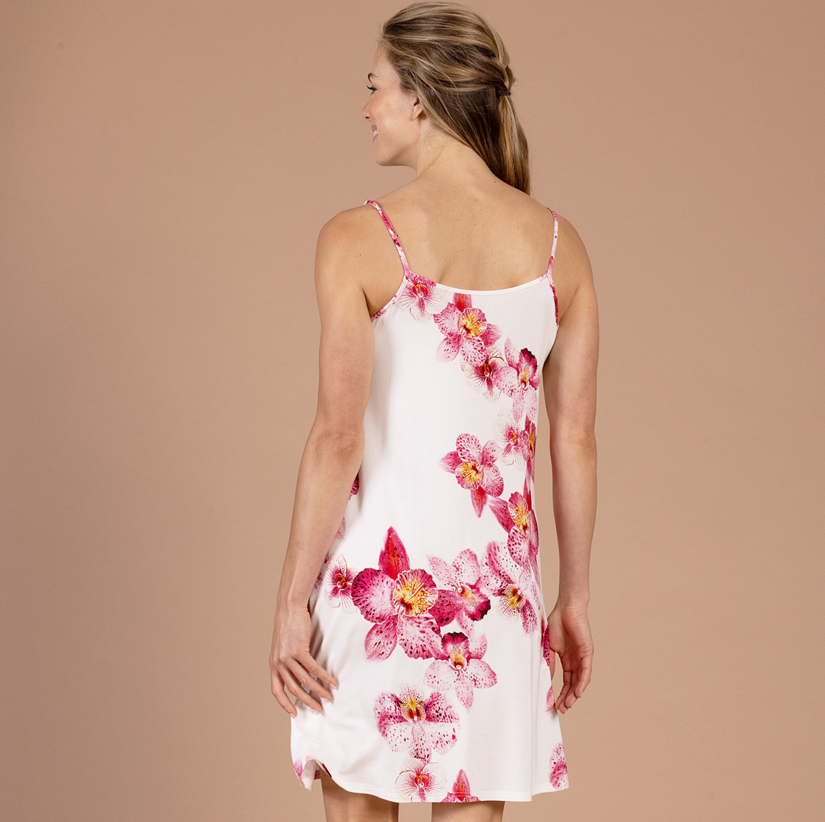 Ontdek dit feminiene negligé met elegante Orchid Whisper-print, perfect voor warme nachten en ontspannen ochtenden. De extra zachte en ademende modal-natuurvezel voelt heerlijk soepel aan op de huid en biedt optimaal draagcomfort. Dankzij de luchtige pasvorm en lengte van 95 cm geniet je van maximale bewegingsvrijheid. Een stijlvolle combinatie van nachtkleding en loungewear die comfort en elegantie moeiteloos samenbrengt.